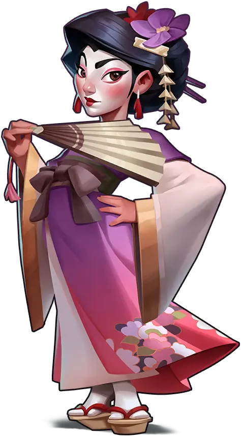 1Throws a poisoned fan at the enemy with the highest HP, dealing 450% damage and poisoning them for 280% damage over 8s.