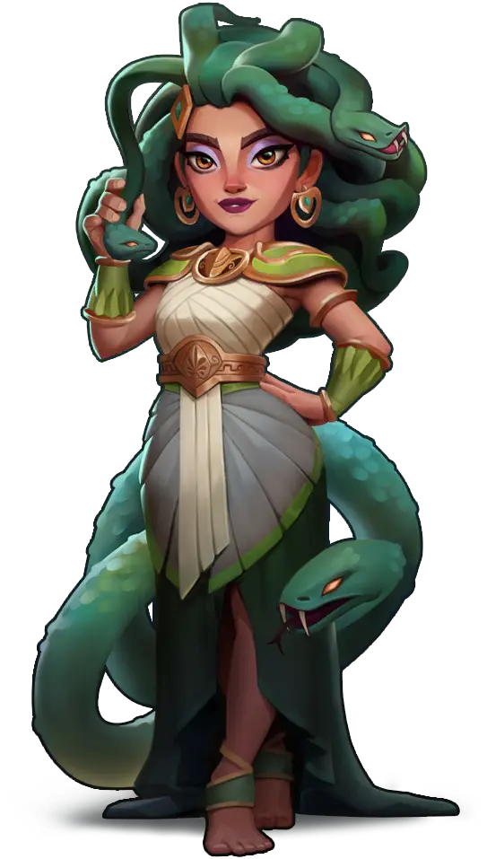 | 1 | Fixes her gaze at the biggest cluster of enemy units, applying poison to all enemies in a range of . The poison deals damage over , reduces ATK Speed by , and leaves affected units stunned for . |